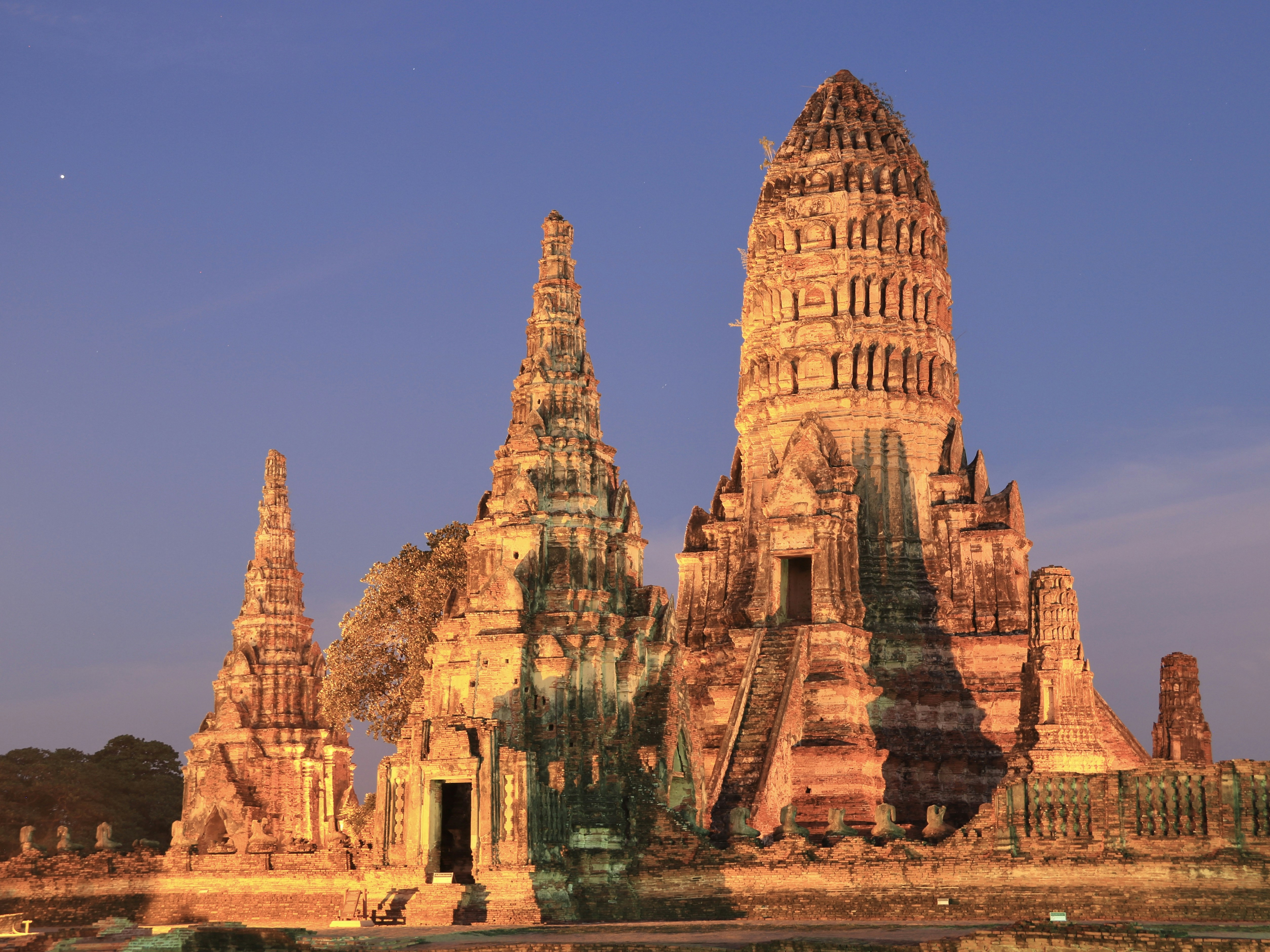 Wat Chaiwatthanaram Located along the banks of the Chao Phraya River, Wat Chaiwatthanaram is known for its Khmer-style architecture, with a large central prang (tower) surrounded by smaller prangs. Built in 1630, the temple’s symmetrical layout and serene riverside setting make it one of the most picturesque sites in Ayutthaya. Arriving here during sunset is a magical experience, as the golden light casts a warm glow over the ancient bricks and spires.